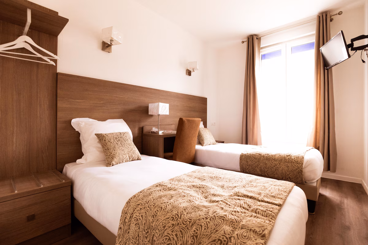 L’établissement propose 32 chambres climatisées, dotées du Wi-Fi gratuit, d’une salle de bains privative et de tout le confort nécessaire pour un séjour relaxant. Sur place, les clients peuvent profiter d’un petit-déjeuner continental, d’un restaurant, d’un bar-salon et d’une terrasse ensoleillée. L’hôtel dispose également d’un service de navette aéroport (en supplément) et garantit un accueil professionnel et attentionné. Avec son ambiance conviviale et son excellente situation, Le Théâtre est une adresse idéale pour un séjour agréable à Paris.
